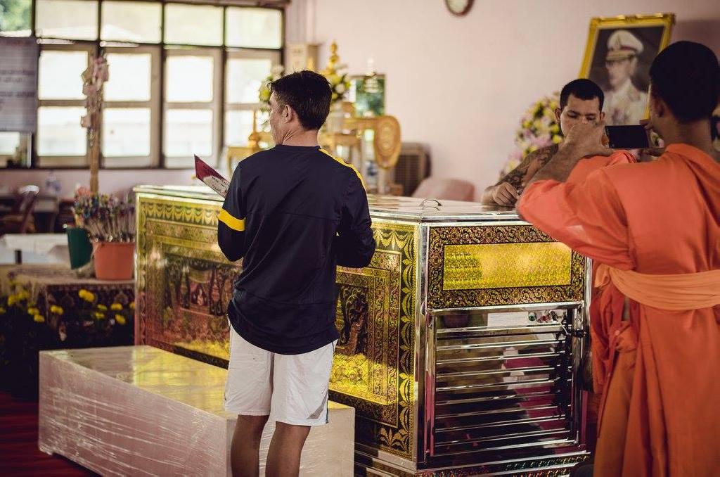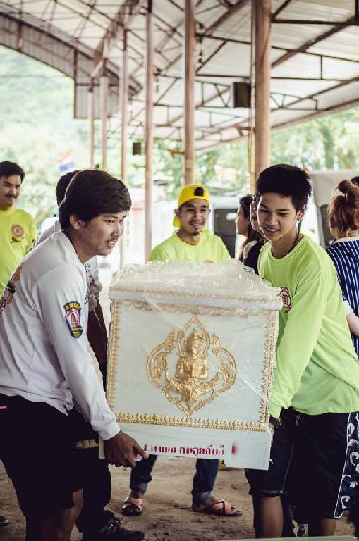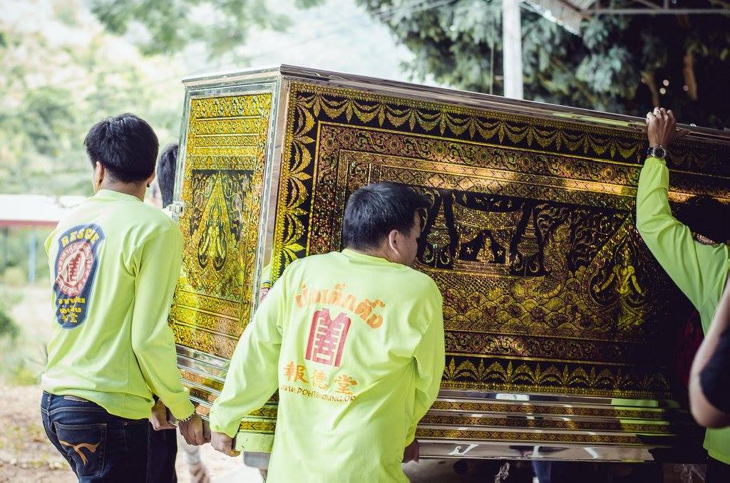 มูลนิธิน้อมเกล้าพัฒนา ร่วมกับอาสาสมัครมูลนิธิป่อเต็กตึ๊ง ลาดพร้าว-บึงกุ่ม ดำเนินการโครงการผ้าป่าหีบศพสัญจร ซึ่งเป็นโครงการบริจาคหีบศพตู้เย็น หีบศพขาว หีบศพเด็กและผ้าขาวห่อศพ ถวายให้กับวัดต่างๆ เพื่อช่วยเหลือประชาชนผู้ยากไร้ สำหรับเก็บร่างครั้งสุดท้าย โดยในปีที่ 3 นี้้จัดทำ ณ. ศูนย์ปฏิบัติธรรมสาขาวัดช่องลม 2 ต.สวนผึ้ง อ.สวนผึ้ง จ.ราชบุรี