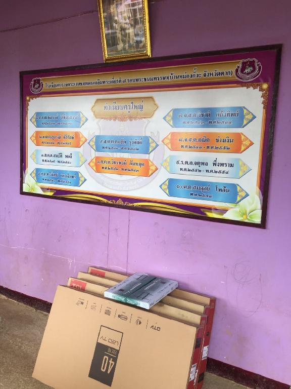 คณะทำงานภาคสนาม มูลนิธิน้อมเกล้าพัฒนา เข้าดำเนินการพัฒนาโรงเรียนตํารวจตระเวนชายแดนเฉลิมพระเกียรติ 7 รอบ (หม่องกั๊วะ) ต.แม่จันทะ อ.อุ้มผาง จ. ตาก โดยมีภารกิจดังนี้1.ติดตั้งโทรทัศน์ LED ขนาด 40 นิ้ว และ จานรับสัญญาณดาวเทียม จำนวน 9 ชุด