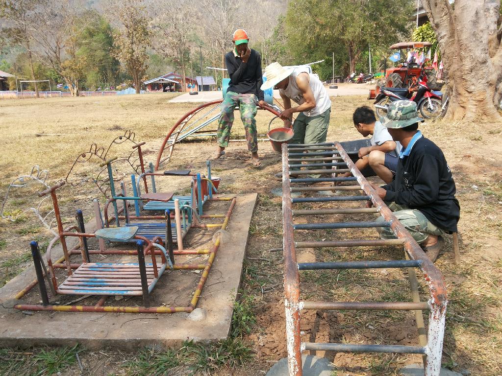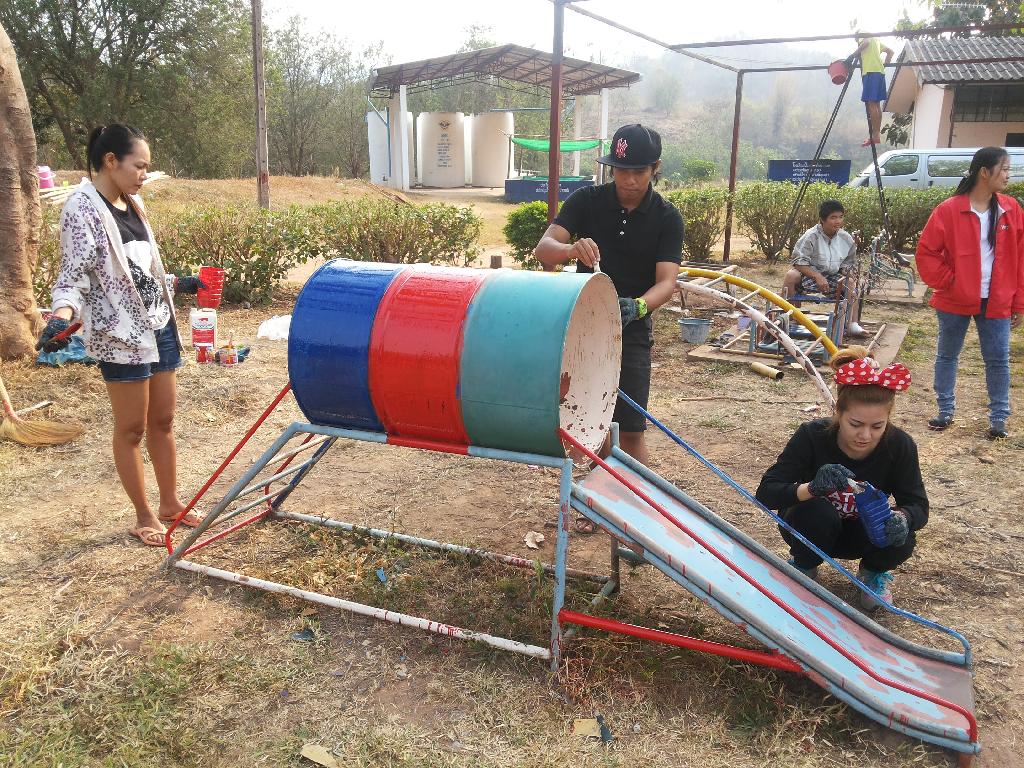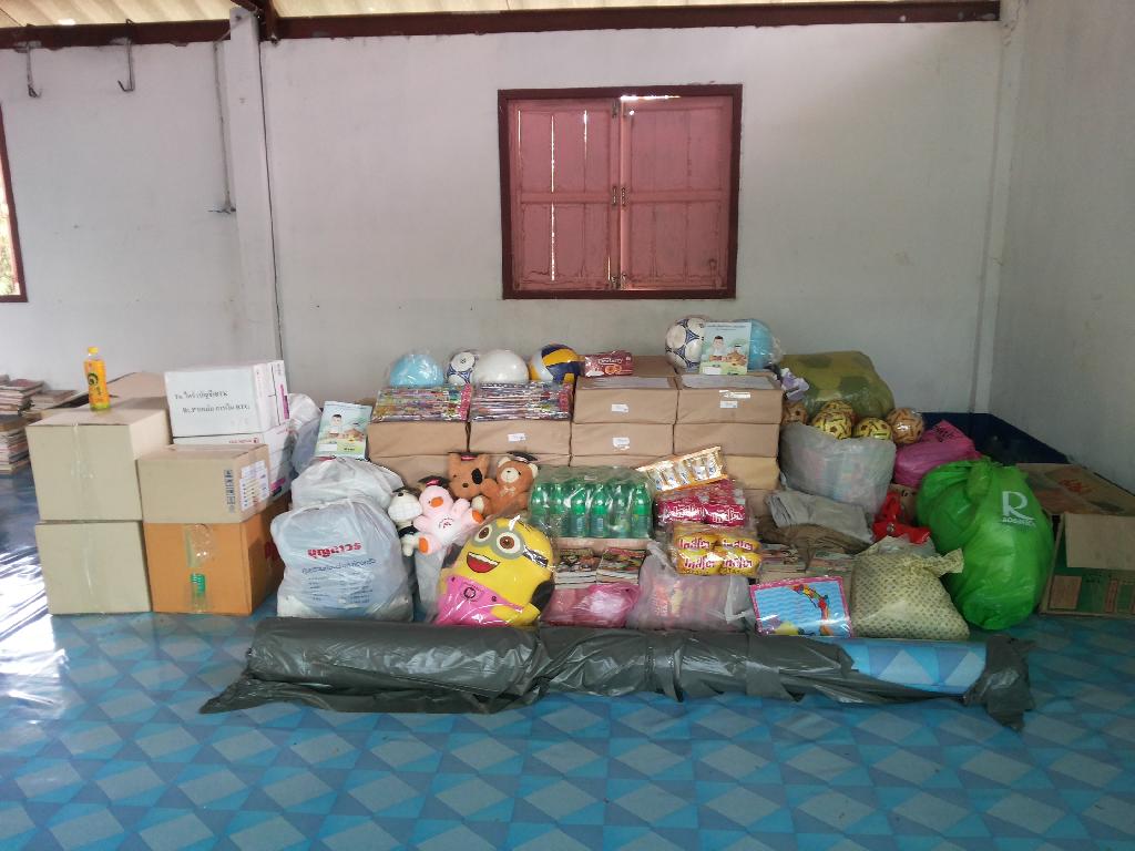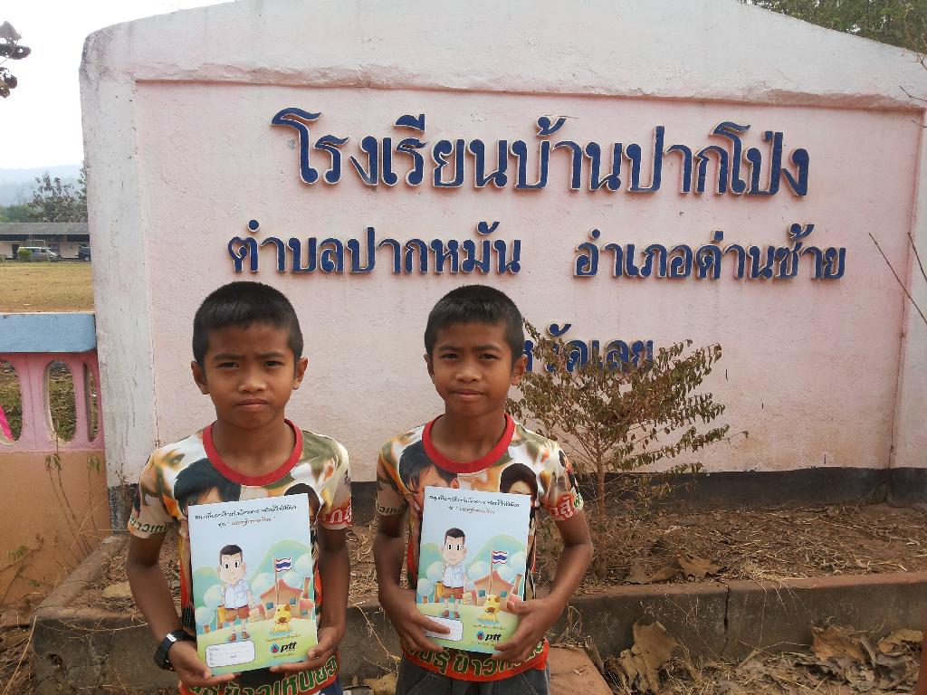 มูลนิธิน้อมเกล้าพัฒนา ร่วมกับอาสาสมัครมูลนิธิป่อเต็กตึ๊ง ลาดพร้าว-บึงกุ่ม มอบสมุดในโครงการน้ำใจให้น้อง จำนวน 5,000 เล่ม อุปกรณ์การศึกษา อุปกรณ์กีฬา ซ่อมแซมเครื่องเล่นเด็กและต่อเติมโรงอาหาร ให้แก่โรงเรียนบ้านปากโป่ง ต.ปากหมัน อ.ด่านซ้าย จ.เลย