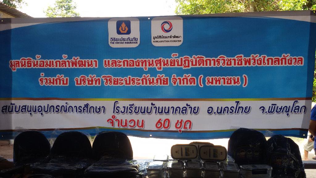 มูลนิธิน้อมเกล้าพัฒนา ร่วมกับ บริษัท วิริยะประกันภัย จำกัด (มหาชน) นำอุปกรณ์การศึกษาไปมอบให้แก่ โรงเรียนบ้านนาคล้าย อ.นครไทย จ.พิษณูโลก ในโครงการอินทรีสร้างบุญ ไทยสุริยะ