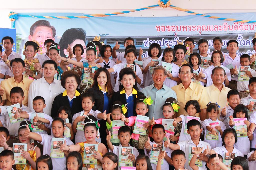 คุณประจักษ์ ตั้งคารวคุณ ประธานกรรมการและกรรมการบริหาร และคุณละออ ตั้งคารวคุณ รองประธานกรรมการ บริษัท ทีโอเอ เพ้นท์ (ประเทศไทย) จำกัด (มหาชน)นำสมุดเพื่อการศึกษาในโครงการน้ำใจให้น้อง มอบให้แก่นักเรียนในพื้นที่จังหวัด ปทุมธานี
