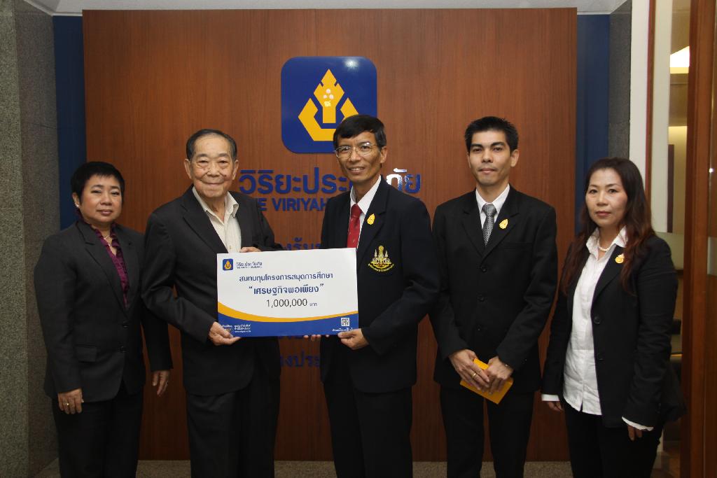 คุณกฤตวิทย์ ศรีพสุธา กรรมการรองกรรมการผู้จัดการ พร้อมด้วยคุณกานดา วัฒนายิ่งสมสุข ผู้จัดการฝ่ายสื่อสารองค์กร บริษัท วิริยะประกันภัย จำกัด (มหาชน) มอบเงินเพื่อสนับสนุนการจัดทำสมุดการศึกษา ชุด "เศรษฐกิจพอเพียง" ฉบับเยาวชน ในโครงการน้ำใจให้น้อง โดยมีคุณจาตุรันต์ วัฒนประทีบ ประธานกรรมการมูลนิธิน้อมเกล้าพัฒนา และคุณชวโรจน์ สว่างโลก เลขาธิการมูลนิธิฯ เป็นผู้รับมอบ จำนวน 1,000,000 บาท เข้าสมทบกองทุน...